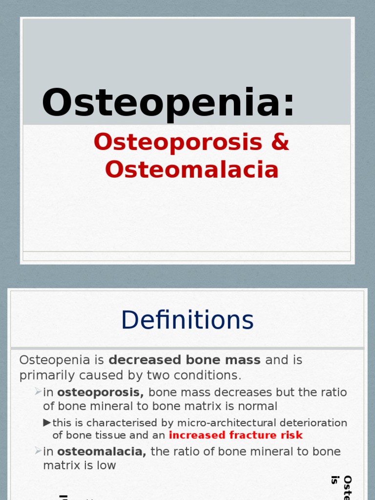 Osteoporosis, postmenopause, calcium, vitamin d, calcemin, denosumab, fracture, osteopenia, bisphosphonates, osteoblast. Vitamin d testing and treatment: Vitamin d supplements can be taken with or without food and the full amount can be taken at one time. Osteopenia of prematurity (oop) is a preventable disease. Osteopenia is a bone condition characterized by bone loss that is not as severe as in osteoporosis.